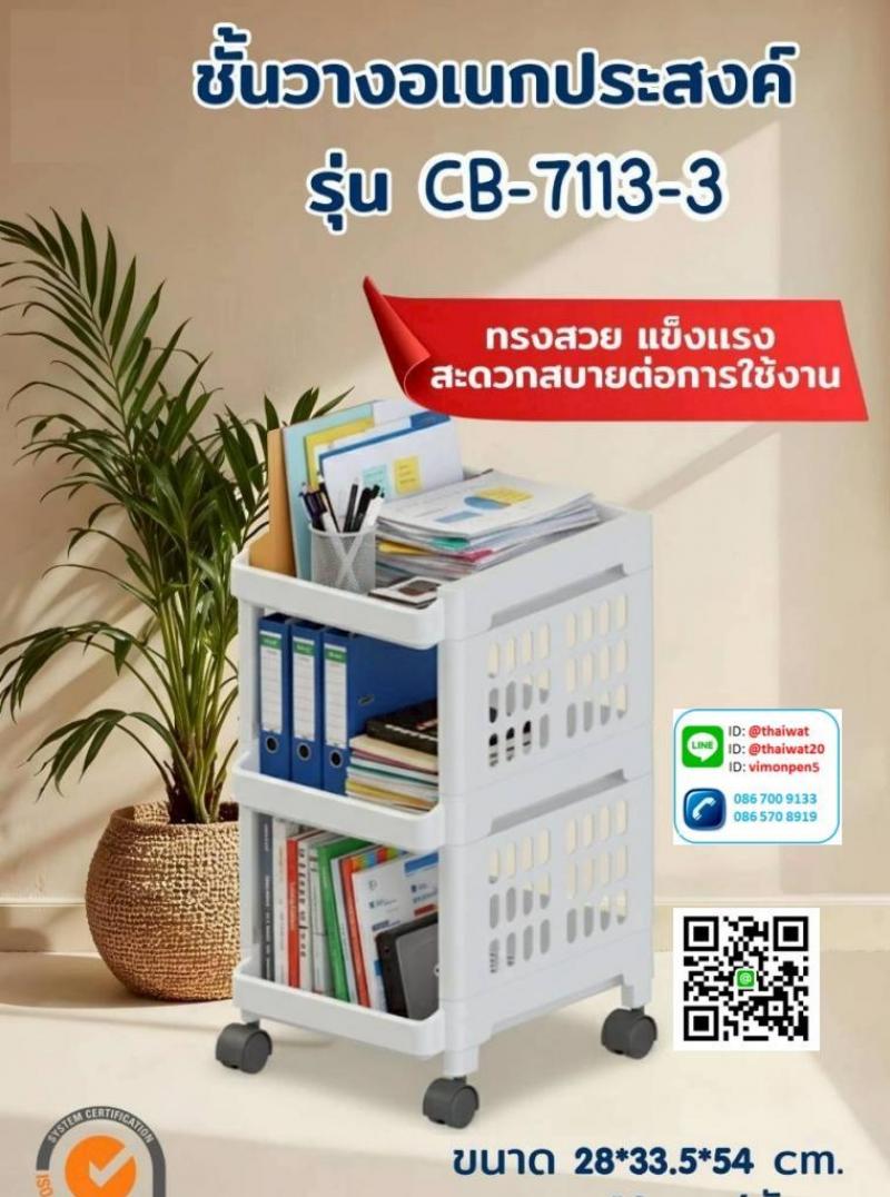 P13123 ชั้นเอนกประสงค์ 3 ชั้น (27.2*48*51.6 cm) สีขาว No.318-4 (ราคาขายส่งต่อ 1 โหล: 12 ชุด: เฉลี่ย 150 บต่อชุด)