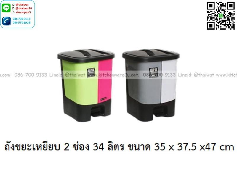 P12936 ถังขยะเหยียบสแควร์ 34 ลิตร 2 ช่อง (35*37.5*47 cm cm) เกรดเอ No.RW9298 ราคาขายส่งต่อ 6 ใบ :เฉลี่ย 550 บต่อใบ