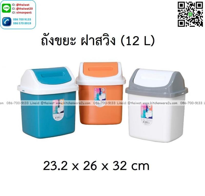 P14091 ถังขยะฝาสวิง 12 ลิตร (23.2*26*32 cm) เกรดเอ No.C-207 ราคาขายส่งต่อ 24 ใบ : เฉลี่ย 80 บต่อใบ
