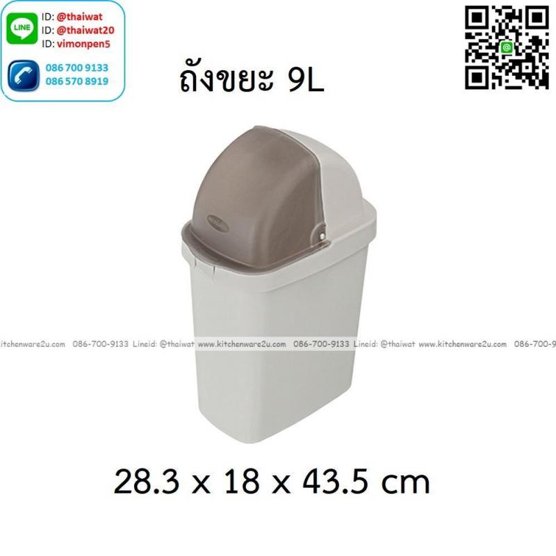 P04241 ถังขยะใหญ่ 9 ลิตร (25 x 26 x 39 cm.) ฝาสวิง No.661-t เกรดเอ ราคาส่งต่อโหล: 12 ใบ :เฉลี่ย 110 บต่อใบ