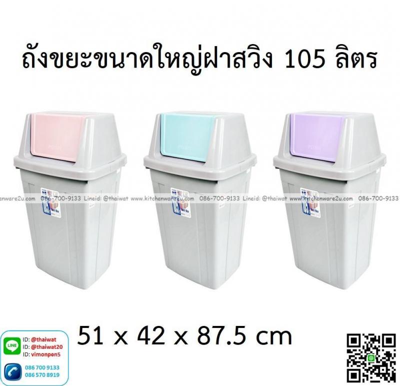 P14095 ถังขยะฝาสวิง 105 ลิตร (51*42*87.5 cm) เกรดเอ No.C105 ราคาขายส่งต่อ 6 ใบ :เฉลี่ย 585 บต่อใบ