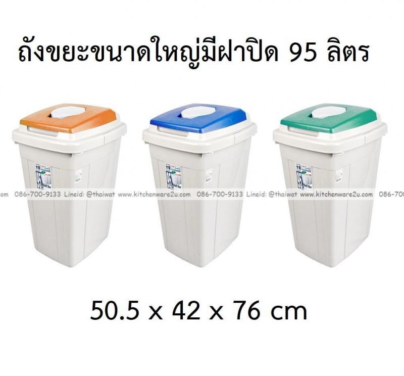 P14096 ถังขยะมีฝาปิด 95 ลิตร (50.5*42*76 cm) เกรดเอ No.C95 ราคาขายส่งต่อ 6 ใบ :เฉลี่ย 575 บต่อใบ