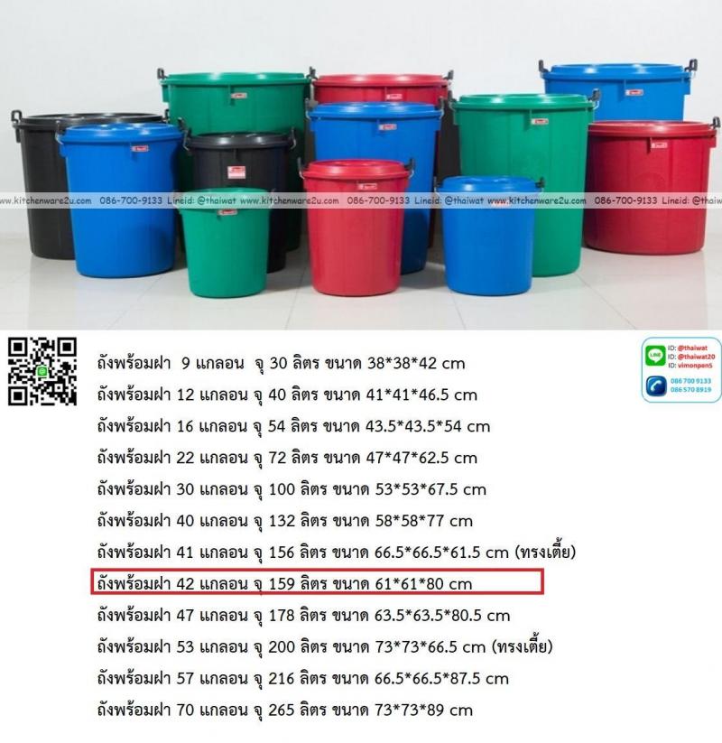 P14100 ถังพร้อมฝา 42 แกลอน จุ 159 ลิตร ขนาด 61*61*80 cm สีดำ ตรางู ราคาขายส่งต่อ 12 ใบ : เฉลี่ย 400 บต่อใบ