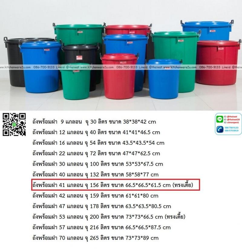 P14101 ถังพร้อมฝา 41 แกลอน จุ 156 ลิตร ขนาด 66.5*66.5*64 cm สี ตรางู ราคาขายส่งต่อ 12 ใบ : เฉลี่ย 425 บต่อใบ