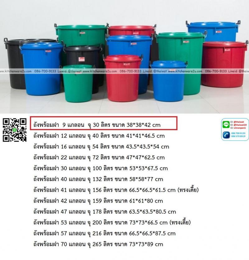 P14104 ถังพร้อมฝา 9 แกลอน จุ 30 ลิตร ขนาด 38*38*42 cm สีดำ ตรางู ราคาขายส่งต่อ 12 ใบ : เฉลี่ย 120 บต่อใบ