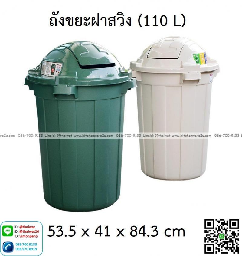P14106 ถังขยะ 100 ลิตร สีขาว พร้อมฐานมีล้อ (53.5*41*84.3 cm) No.C-110 เกรดเอ ราคาขายส่งต่อ 3 ใบ : เฉลี่ย 750 บต่อใบ
