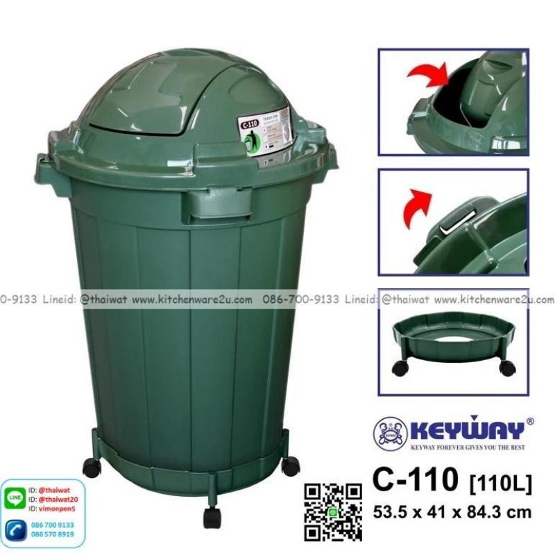 P14107 ถังขยะ 100 ลิตร สีเขียว พร้อมฐานมีล้อ (53.5*41*84.3 cm) No.C-110 เกรดเอ ราคาขายส่งต่อ 3 ใบ : เฉลี่ย 750 บต่อใบ