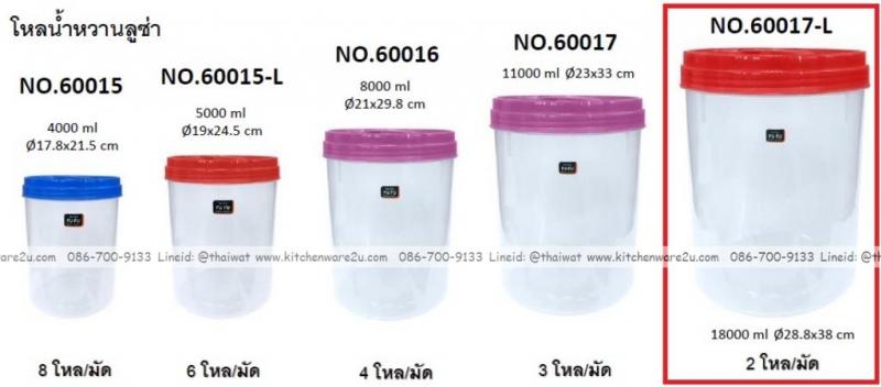 P07919 ขวดโหลแม่ค้า 18 ลิตร (28.8*28.8*38 cm) No.60017-L (ราคาขายส่งต่อ 2 โหล: 24 ใบ:เฉลี่ย 80 บต่อใบ)