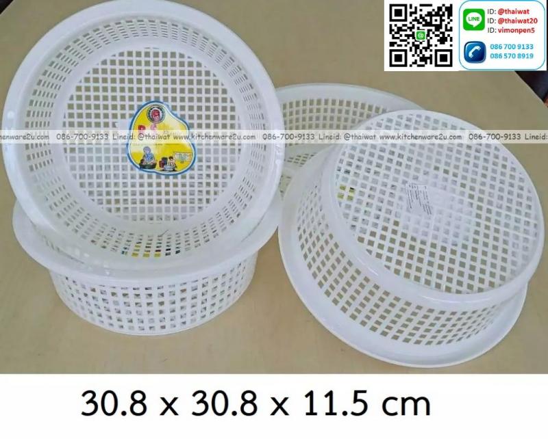 P10430 ตะแกรงกลม เอนกประสงค์ (30.8*30.8 x 11.5 cm) สีขาว เกรดเอ No.222 (ราคาขายส่งต่อ 1 โหล: 12 ใบ)
