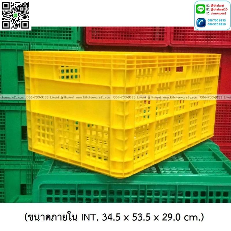 P10428 ลังโปร่ง (ขนาดภายใน INT. 34.5 x 53.5 x 29.0 cm.) แข็งแรง เกรดเอ สีเหลือง No.426 ราคาขายส่งต่อ 12 ใบ:เฉลี่ย 250 บต่อใบ